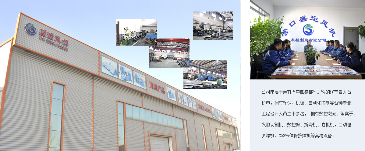 營口盛運風機機械制造有限公司是一家從事各類風機機械、除塵系統(tǒng)的研發(fā)、設(shè)計、制造為主的專業(yè)生產(chǎn)企業(yè)。公司座落于素有“中國鎂都”之稱的遼寧省大石橋市, 公司始建于1992年,擁有環(huán)保、機械、自動化控制等各種專業(yè)工程設(shè)計人員二十多名,擁有數(shù)控激光、等離子、火焰切割機、數(shù)控剪、折彎機、卷板機,自動埋弧焊機、CO2氣體保護焊機等高精設(shè)備。主要產(chǎn)品有高中低壓離心通心機、高壓小流量離心通風機、高溫風機、排塵風機、軸流風機、陶瓷窯爐風機、鋁材窯爐風機、鎂質(zhì)品專用風機等二十多個系列三百多種規(guī)格及上百種非標產(chǎn)品。廣泛應(yīng)用于機械、化工建材、爐窯冶金、輕工、鑄造、服務(wù)行業(yè)。 |